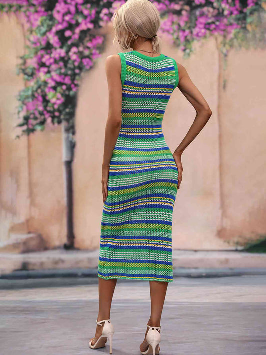 Striped Round Neck Sleeveless Midi Cover Up Dress