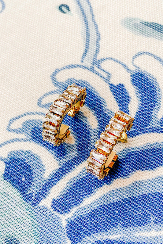Natural Elements Gold Pave Twisted Hoop Earrings