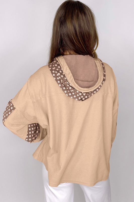 Apricot Floral Patchwork Star Pattern Drawstring Hoodie