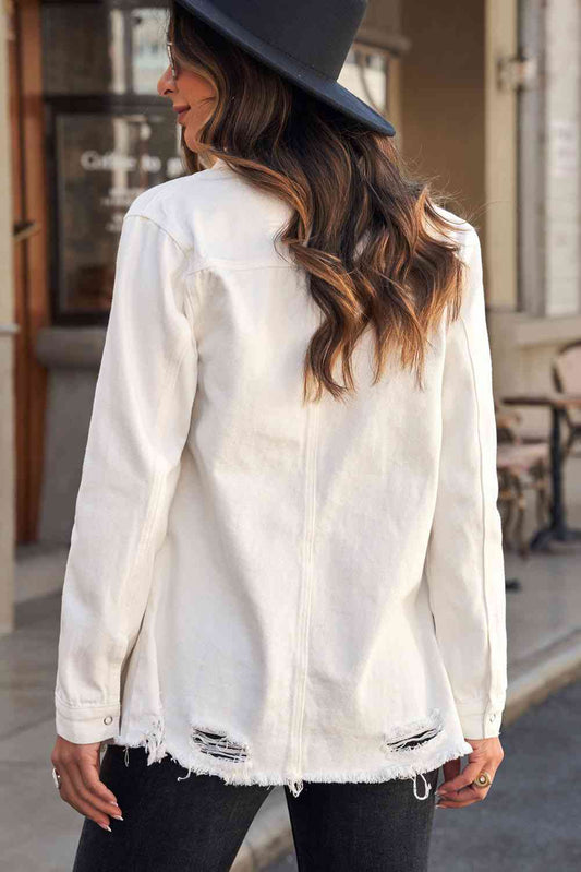 Distressed Raw Hem Dropped Shoulder Denim Jacket